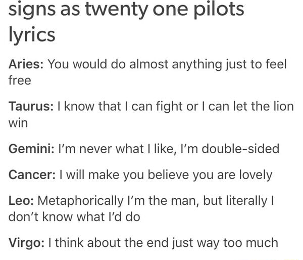 I m never what i like i m double sided lyrics. I thought those were the real lyrics when vessel came out and i was just like haha ok tyler. Im never what i like im double sided and i just cant hide i kinda like it when i make you cry cause im twisted up inside. Sep 23 2016 - Im never what I like Im double sided and I just cant hide.