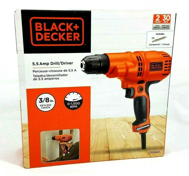 Black decker corded drill 52 amp 3 8 inch dr260c 55 Amp 38 inch DrillDriver with Storage Bag Powerful and easy to use this variable speed corded power drill features a bubble level for accuracy and keyless chuck for quick bit changes.