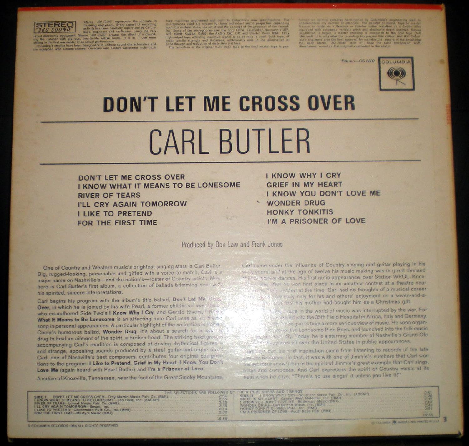 Lp Carl Butler Don T Let Me Cross Over 1963 Amazon Com Music
